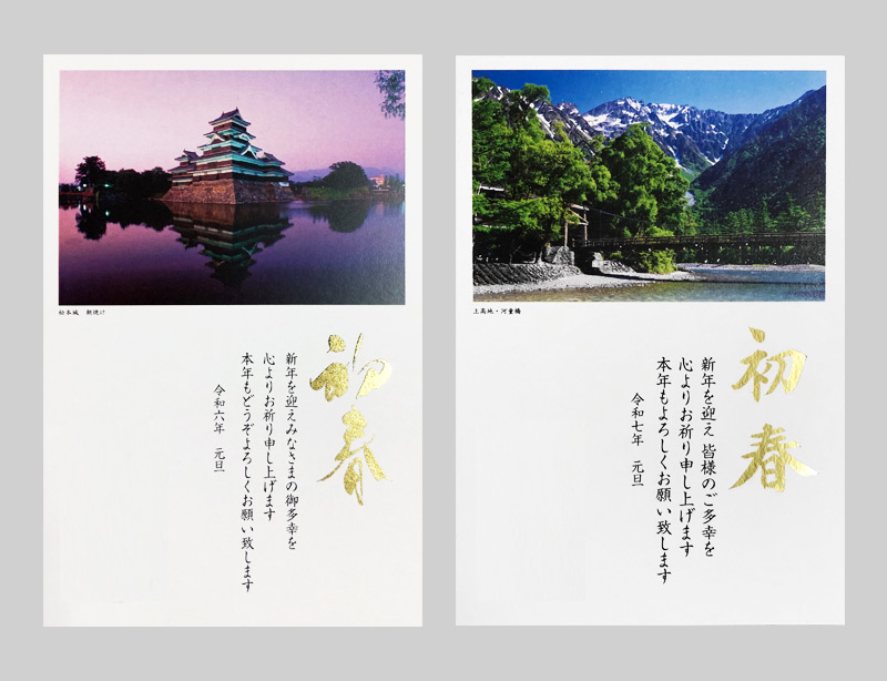 カラー写真と箔押し加工で、高級感のある年賀状に